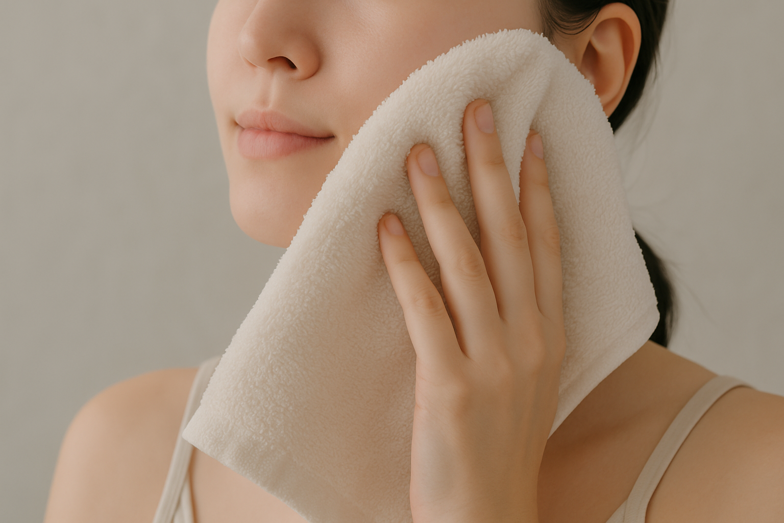 洗顔後にタオルでこする動きは刺激につながることがあります。柔らかいタオルを使い、押さえるように水分を取ることを意識しましょう。